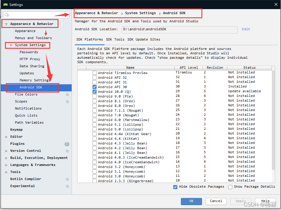 下图描述了计算机上的SDK版本以及SDK名称与版本号的关系: