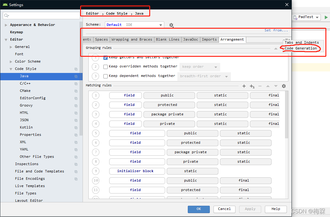 默认情况下,在方法的上行或下行中,将变量添加到成员变量的代码行位置。