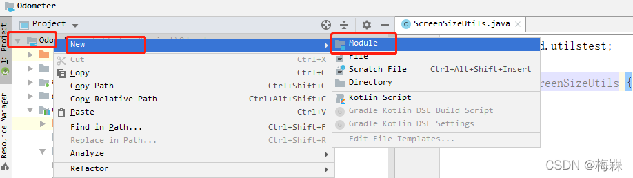 在项目名称下创建新模块, 选择 Andorid 库, 然后写入代码 。