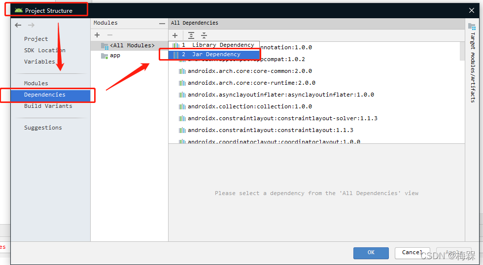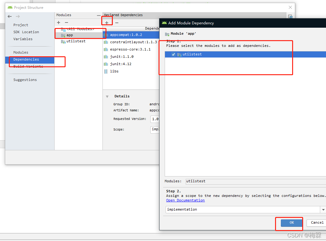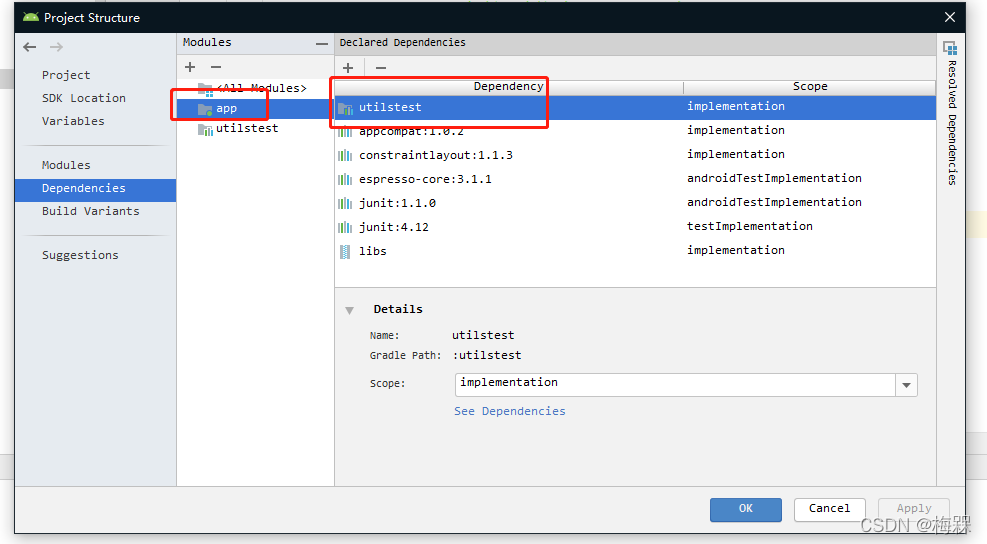 在将模块移至当前项目下的文件夹后,必须添加以下依赖性: