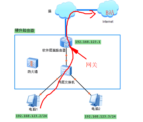 首先需要理解的是为什么需要这个网关。我用我的电脑连接到B站, 也就是说,注意我们不是单一部分, 我们必须用这个网关来过渡, 除非我去B站总部, 并访问Bareailiz站的同一部分, 我们不是单一部分, 除非我去B站总部, 访问B站同一部分。
