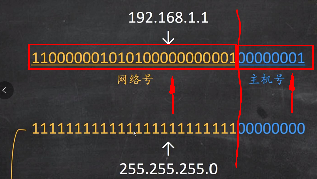 网络号码在左边1个区域,而主机号码在右边0个区域,如下文所示:
