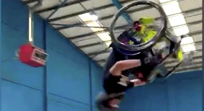 一名12岁的残疾青年在使用轮椅时成功表演。