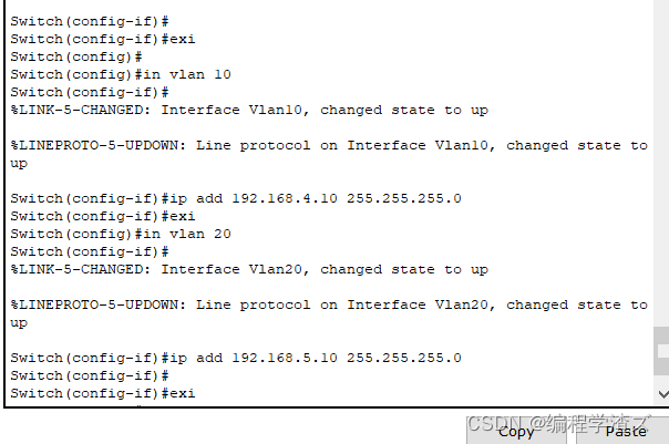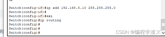我们可以看到上面的过程: 我们进入特权和全球模式, 然后我们进入虚拟局域网 并添加一个 IP, 我们加上两个,因为我们有两个子网络, 然后我们选择开关模式作为路径模式 使用 ip 根。