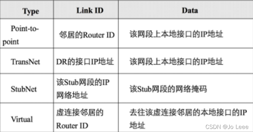 LINK-表示与路由器接口的连接,可使用若干LINK表示连接信息。