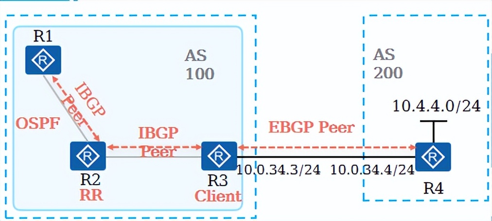 [R3-bgp] peer 10.0.34.4 as-number 200