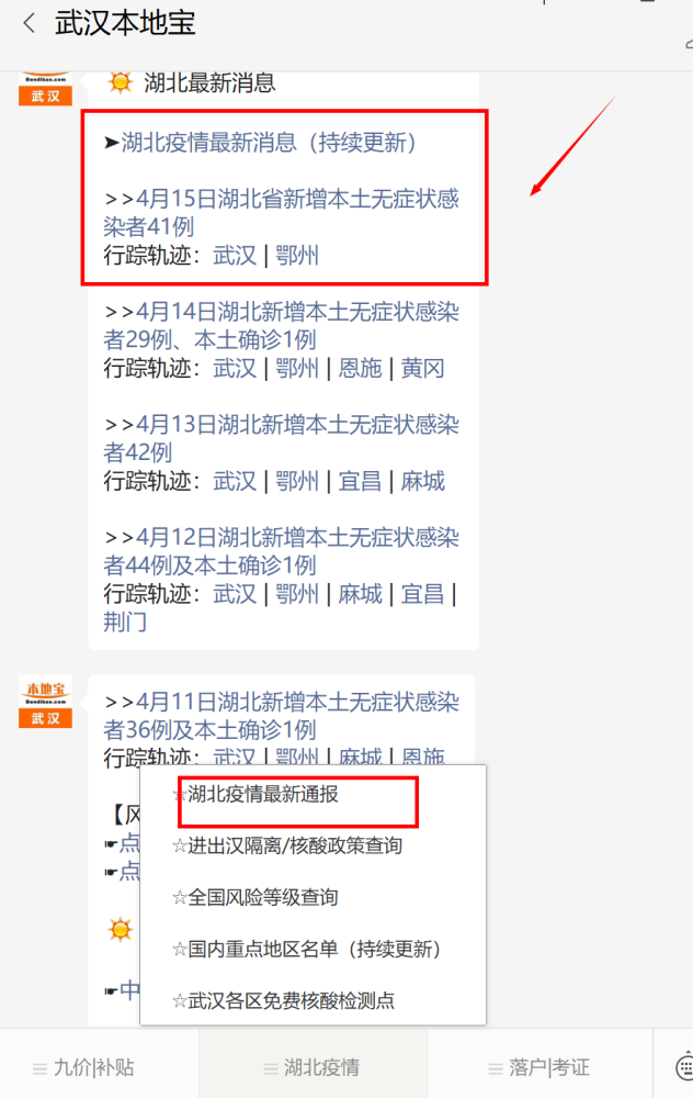 关注湖北目前的疫情,帮助预防与管理疾病。 你可以跟踪武汉公开的微博账户, 前往导航栏, 点击北湖的紧急消息。