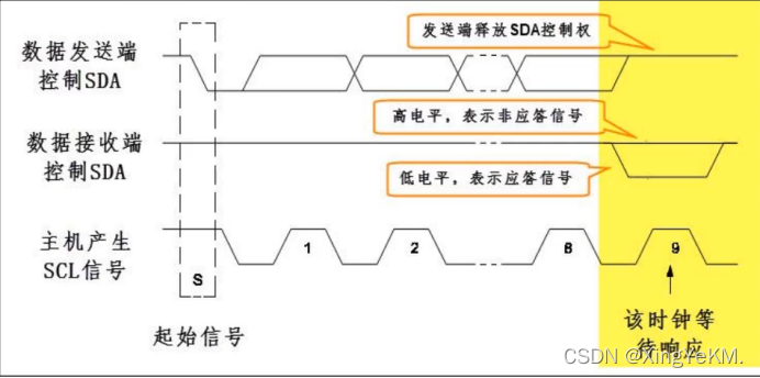 I2C 数据和地址传输使用“回复(ACKs)”和“非回复(NACKs)”信号确认。