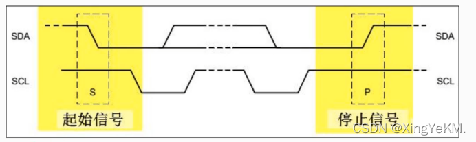 当SCL线高时,SDA线从高转到低,表示传输开始。