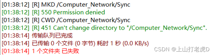 我们上传了一个文件到服务器,发现它被拒绝, 表明我们指定的权限是有效的。