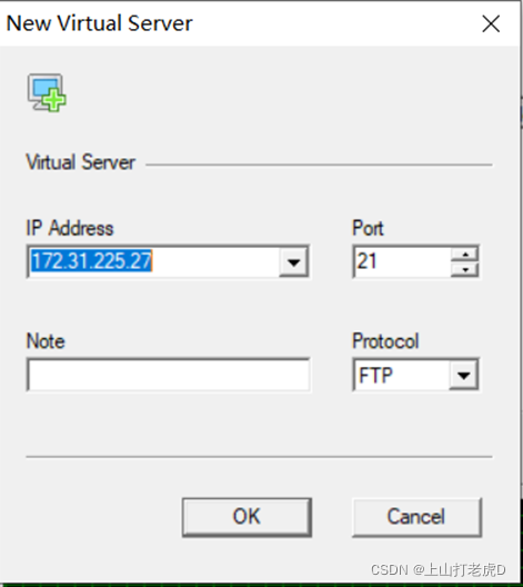 服务器局域网地址 获得后, 虚拟 FTP 服务器会形成。 将 IP 地址设置在机器的局域网地址, 即: 端口号码默认设置为 21 。