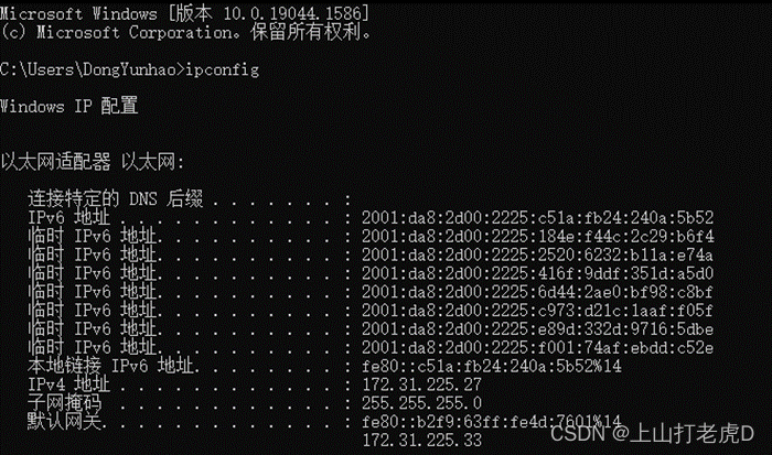 如图4所示,最初,为了安装FTP服务器,服务器局域网ip必须在最后两次试验中使用ipconfig 指令收集并查询,这两次试验是图4所示的。