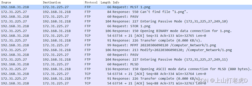 首先,客户端发布 MLST 命令 。1.Png文件是参数。由于是上传操作,无法关闭临时文件夹:%s。服务器端端在被动连接模式下, 然后请求文件 。服务器随后以被动方式作出答复。发送文件的服务器 IP 地址是ID港号是63734进行数据传输。当服务器- 终端响应传输完成后, 此函数将数据包返回本地客户端 。