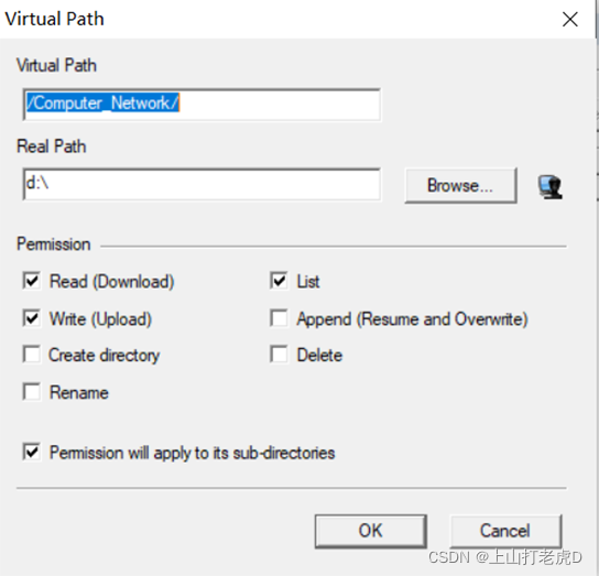 我们可以通过服务器配置可访问的文件路径和权限, 指定远端服务器的磁盘 D 为公开路径, 构建一个匹配计算机_ Network 的虚拟路径, 设置阅读和写入权限, 并反复应用权限 。