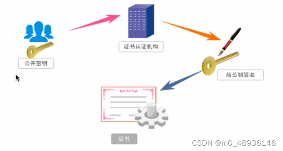 公用密钥由服务器的开发者持有 。数字证书核证公司已要求提供公用钥匙。申请人由数字证书核证当局确认。审核通过以后,这是开发商第一次能够为他所要求的公用钥匙创建数字签字。接下来,使用这个签名的公用密钥, 指派给别人。然后在证书中插入密钥。绑定在一起。
