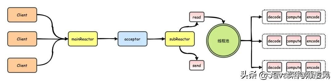 虽然解码、计算和编码不是IO活动,但多线反应堆的目标是充分利用多核特性,同时去除非IO工艺。