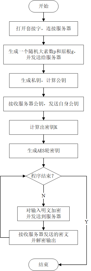 不只是客户,是服务器,是客户,是服务器,是服务器,是客户,是服务器,是服务器,是客户,是服务器,是客户,是客户,是客户,是客户,是客户,是客户,是客户,是客户,是客户,是客户,是客户,是客户,是客户,是客户,是客户,是客户,是客户,是客户,是客户要开始, 连接必须使用与 Socket 结构相关的函数来构建 。建立连接之后,为谈判钥匙,使用与Diffie Hellman协议相关的功能。它节省了质数、 根数、 私人钥匙、 公用钥匙、 公用钥匙等, 在一个结构中。 您在中间生产接下来,AES256-GCM加密模块称为要传输的数据在发送、接收和解码前先加密。直到程序结束。