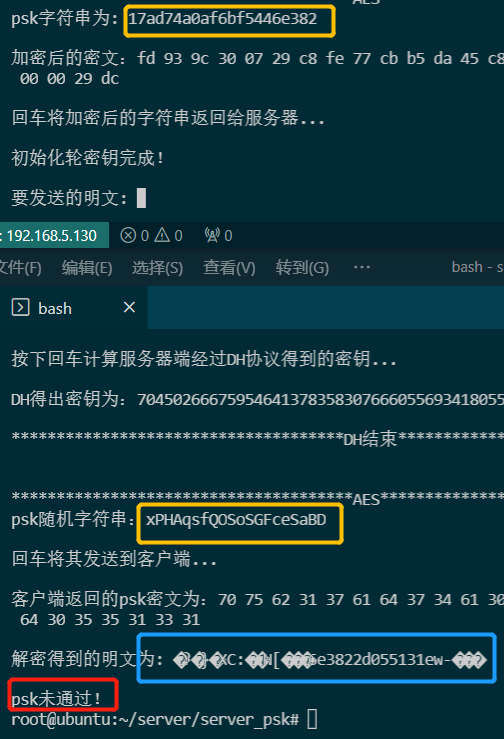 必要时使用预先分享的钥匙。第一步是在守则中附上一个关键字。客户端和服务器都相同。AES在Diffie Hellman咨询后加密了密钥 。服务器最初生成随机字符串,它以公用钥匙的形式提供给客户。收到电文后,客户将使用预先共享的密钥加密。信件将发回服务器 。解密由服务器使用预共享密钥进行。如果解密的字符串与发送的字符串相符,则允许互相通信,否则拒绝。