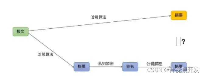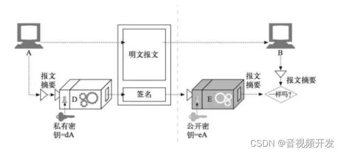 发件人A使用私人密钥加密生成签名(通过提供报告摘要(报告文本使用HAshi方法如SHA-1形成)。在提交正式报告的同时,还将其送交了接受方B。通过计算所获得的信息,收受人B收到两份报告摘要。对两份报纸摘要的比较表明,该报是否被篡改。即:
