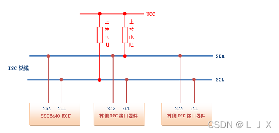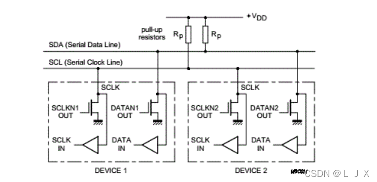 IIC总线的两条信号线,即SDA和SCL,同时处于高纬度,确定了主线的自由度。此时,每个装置的输出水平场效应管处于封闭状态,即释放总线,每条信号线上上拉并推动电源。