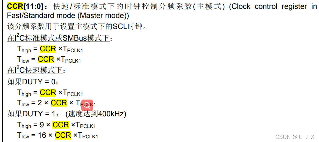 Thigh = CCR* Tpckl1 Tlow = 2 * low * Tpckl1 快速模式拖车/拖车 = 2: Thigh = CCR* Tpckl1 Tlow = 2 * low* Tpckl1