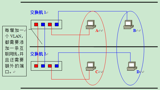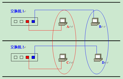 在这种情况下,两个交换机构的数据流已经很复杂,如果建立覆盖若干交换的VLAN,数据流肯定更难记录。