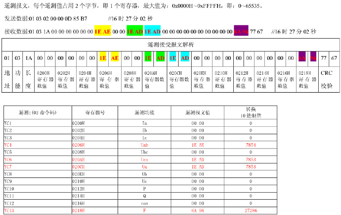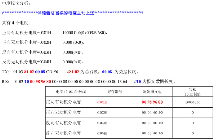 如要读 A 相电压,则应将 0x00 0x00 填入登记簿的初始地址字段 。