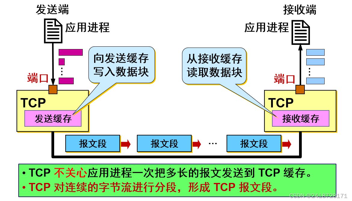 TCP并不关心申请过程一次向TCP缓存发送信息的时间长度 。