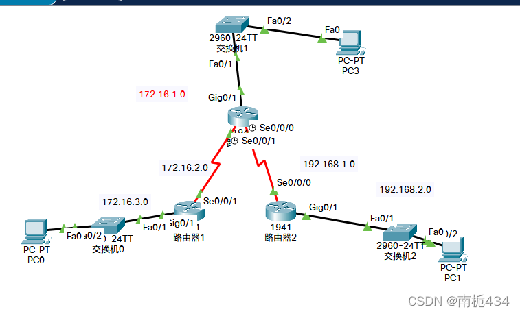 ip route 172.16.3.0 255.255.255.0 192.168.1.2