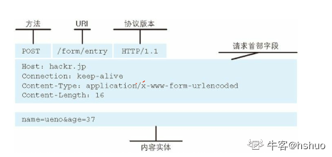 包括下列要素:请求方法、请求 URL、协议版本、第一字段请求和内容实体。