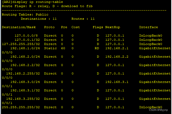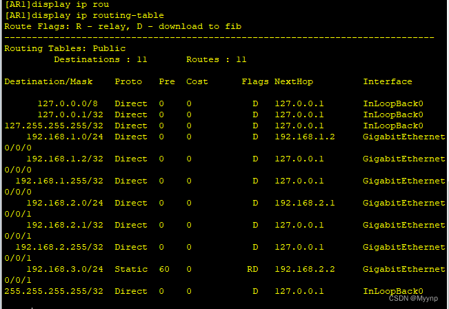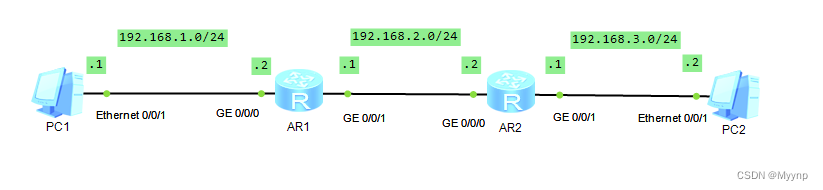 [AR1]ip route-static 192.168.1.0 255.255.255.0 192.168.2.1