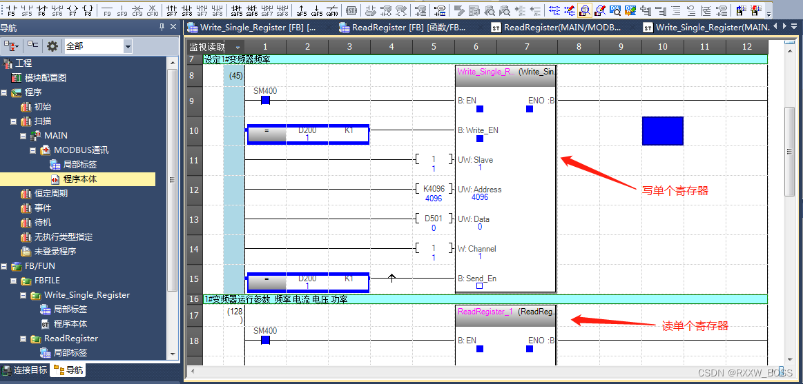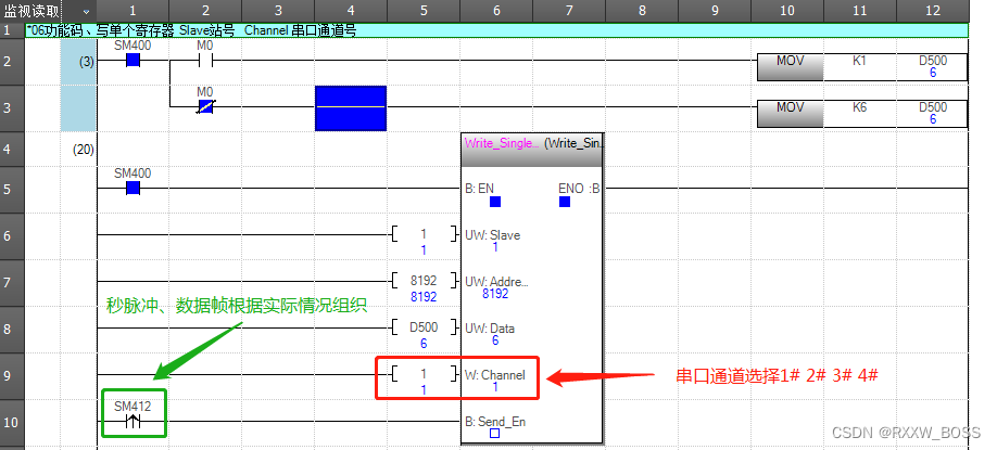 这不可行,因为FX5U 4系列渠道只以两种方式之一接受ADPRW指令。这就是他们说的: 全力支持MODBUS主站指令。对于其余的频道,我们只能加密MODBUS的数据框。没有关于RS2指令的既定通信。RS2命令分为几个区块。无数的电话会被打错这就需要在外面执行RS2命令。这只是一个生成各种数据框架的块块。