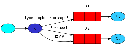 专题类交易所的匹配规则已经扩大。它可与直接的外源类比。也是连接到路由键的键盘的队列。但是,匹配规则 有点不同在这里。