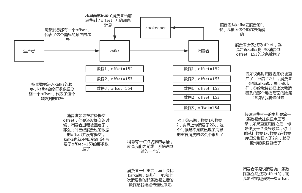 至少一次:喂饱消费者。然后处理消息,然后节省了冲抵部分。如果新闻被有效地消化,然而,动物捕食者出乎意料地未能在抵消步骤进行保存操作。因此,有可能获得进一步资料,了解以下取货公司以前处理过的问题。上面写着"至少一次"之所以没有及时将冲抵原因寄给食鼠,是因为它不可能做到。Zookeper回到了正常状态 或之前的偏移。