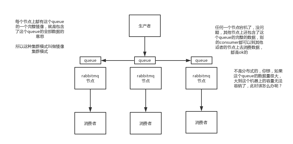 队列的信息和信息以多种方式存储。当信件被写入时, 它会自动同步到许多队列实例 。它就像一台机器,它像一台机器, 它像一台机器,它像一台机器, 它像一台机器,它像一台机器, 它像一台机器,它就像一台机器, 它像一台机器,它像还可以在屋顶上安装更多的机械。但是性能开销太大,信息同步给网络流量带来压力,另外,没有扩展性可言,如果这条线负担过重加机器,此队列中的所有数据同样存在于新计算机中。无法选择以线性方式扩展您的队列 。此时,必须激活镜像集模式 。创建一项政策并将其保存到兔子管理控制平台。数据与指定的节点数同步。然后重新创建队列 。应用这个策略,数据自动与其他节点同步。