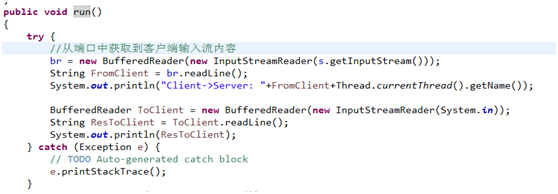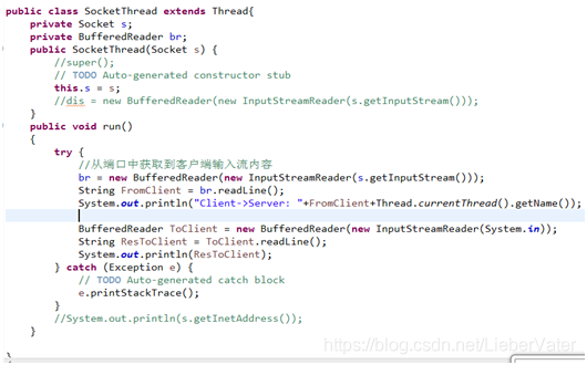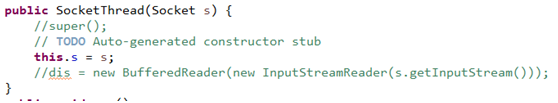在 ServerThread 类中,我更新创建功能,以便您能够通过线索所需的套接字对象。