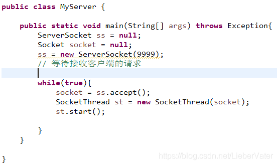 服务器端做了一些修改, 处理部分被移到线条中。 收到 Socket 对象后, Socket 对象被发送到线条中, 在服务器主类中进行在线后续操作 。