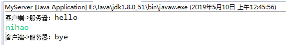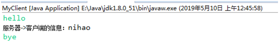 客户向服务器发送了“Hello”信息,随后是服务器的“nihao”信息,以及客户的“再见”信息。