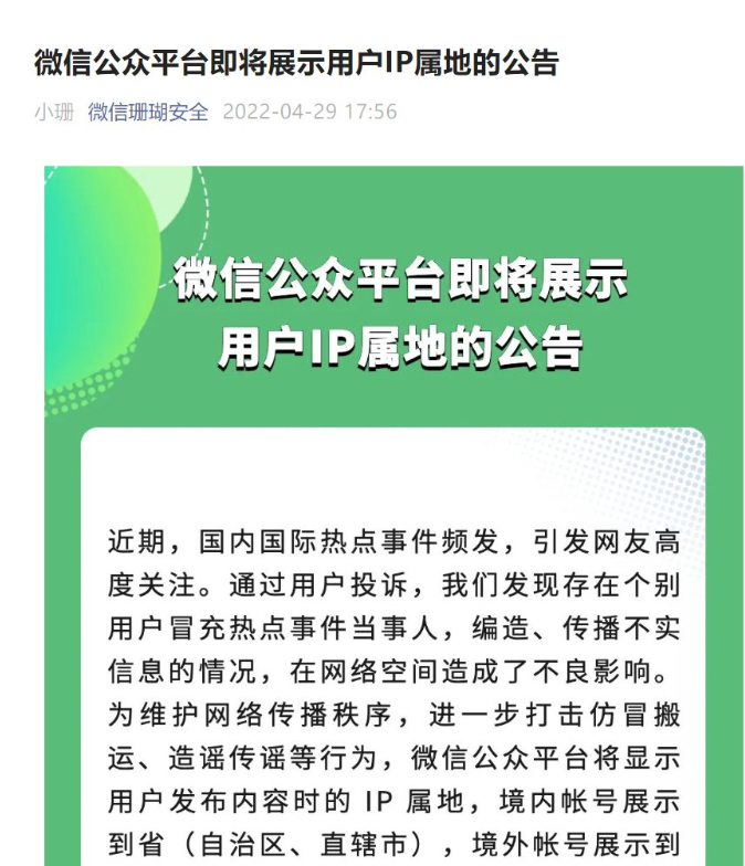 29日,《微博珊瑚安全公报》指出:为了维持互联网的通讯秩序这是政府有史以来第一次能够打击假造、谣言和其他形式的错误信息。当用户的内容在推特的公共平台上公布时,将显示用户的 IP 域 。各省(直辖自治区和直辖市)公布地方账户。外国账户显示在显示账户数目的国家(地区)中。知识产权依赖账户以经营人提供的资料为基础。目前,用户无法自己打开或关闭显示器。