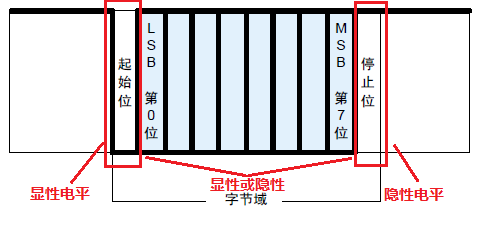 常规 UART 数据传输格式中的字节从可见水平开始,以隐藏水平结束。
