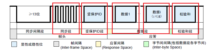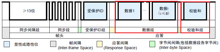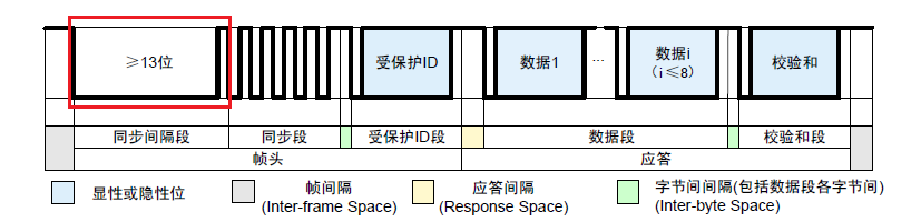 为了节省资金,LIN公交车没有使用高精度时钟,而是选择精确和低成本时钟,这可能造成节点和主机节点之间的时间差,而同步段的目的是将节点数据比特率改为主机节点。