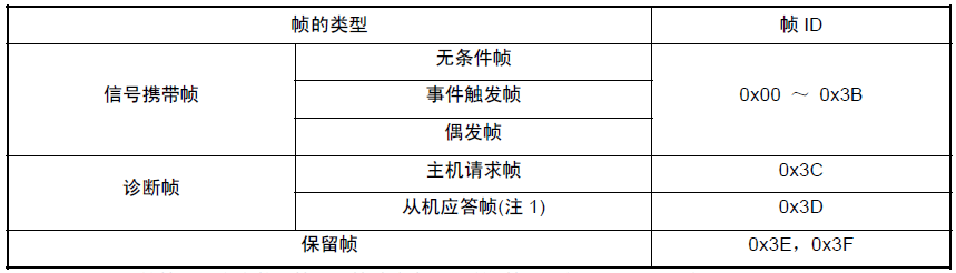 - 虽然框架标识和数据是独立提供的,但它们构成了LIN数据库中的完整框架;然而,框架标识是由主机任务发送的,而数据则放在一个节点,由机器工作提供。