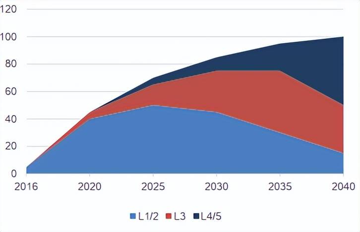 随着众多公司的合作,整个市场规模很小。 根据机构预测,去年全球无人驾驶市场约为70亿美元。 到2040年,无人驾驶销售将达到2100万个,预计L4和L5自动驾驶普及率将达到50%。