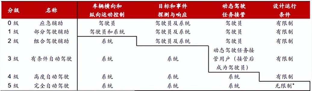 在自动驾驶方面,我们必须首先界定其分类。 L0-L5共有六个等级,每个等级都有不同的限制,作为以后等级的一种缓冲。