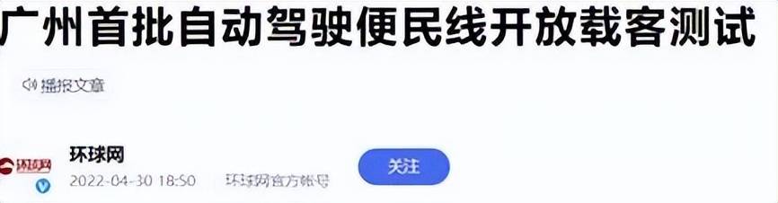 广州首次开始提供自动驾驶旅客测试,使用L4级的自动公交车(高度自动化驾驶)。