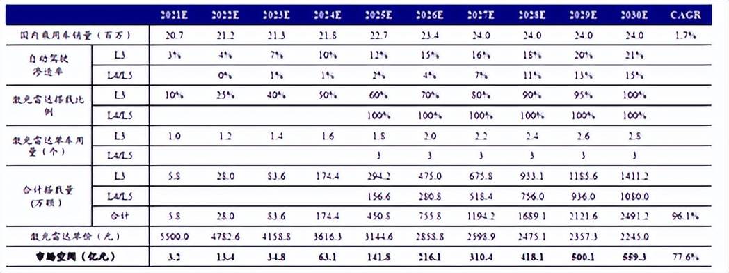 激光雷达市场规模的预测
