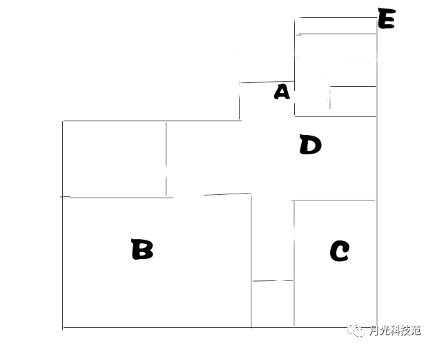 配网完毕之后,考试仍取决于实际考试结果。我也不相信这是个专业的词只要告诉我的测试结果我的建筑还不到120个单元路由器位于家门前。设置为双频合一,测试工具手机无线,使用APP测试软件测试尖锐恒星闪光。网络中国电信,我们有500Mbps下来。上传50Mbps。路由器位于A点。B点是主卧,C点是书房,D点是客厅,E点是阳台。(比例不太正确,E点代表一个反向信号。)
