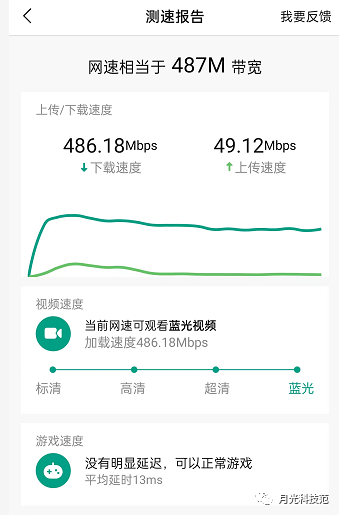客厅里没有地方躲藏速率直接拉满。信号为-30db,下载速度约为486 mbps。上传速度约为49 mbps。我在客厅从不同角度尝试过信号强度波动不超过5DB。在无遮挡的情况下,网速几乎是满的。