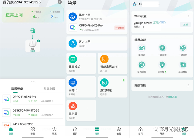 如果你想使用路由器的后台可以通过网页,一个小小的软件和一个正式的APP。后阶段管理仍然发挥一些有益的作用。比如修改默认密码,儿童上网模式,游戏加速。儿童使用互联网的习惯可能被用来限制报酬、社交、游戏和其他活动。许多智能之家只支持2.4GHz。为了避免干扰,白葡萄酒也可以为智能家庭4GHz WiFi网络设置一二。净速也是有益的。