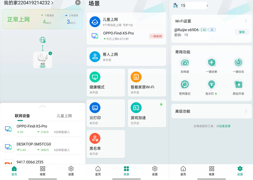 如果你想使用路由器的后台可以通过网页,一个小小的软件和一个正式的APP。后阶段管理仍然发挥一些有益的作用。比如修改默认密码,儿童上网模式,游戏加速。儿童使用互联网的习惯可能被用来限制报酬、社交、游戏和其他活动。许多智能之家只支持2.4GHz。为了避免干扰,白葡萄酒也可以为智能家庭4GHz WiFi网络设置一二。净速也是有益的。